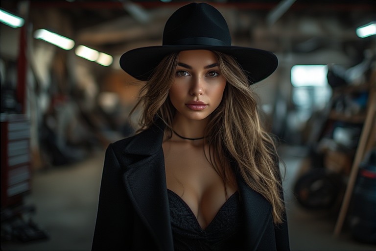 There’s something symbolic in it. A repair shop is a place where broken things get fixed, where problems are solved, where strength is practical. And she, dancing in the middle of it, becomes a reminder that femininity and power can exist anywhere. 🖤✨