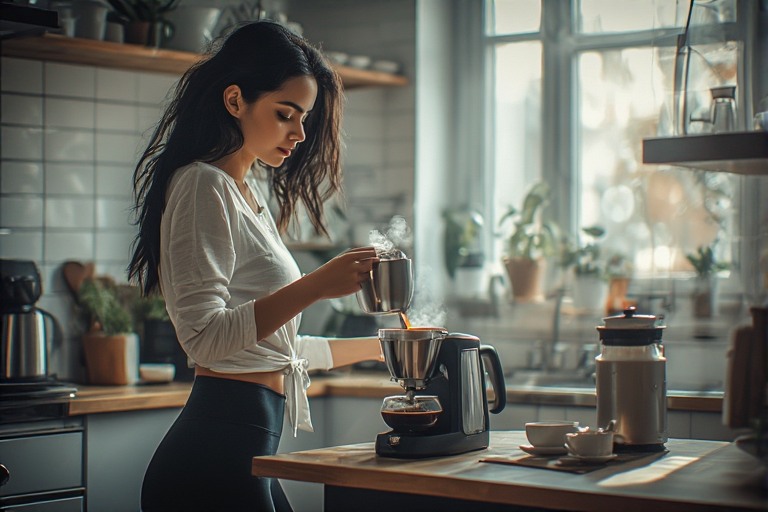 As the coffee brews and the warm aroma fills the room, the rhythm begins to take over. Between stirring her cup and setting things on the counter, she starts to dance — effortlessly, joyfully, and completely in the moment. 🎶✨